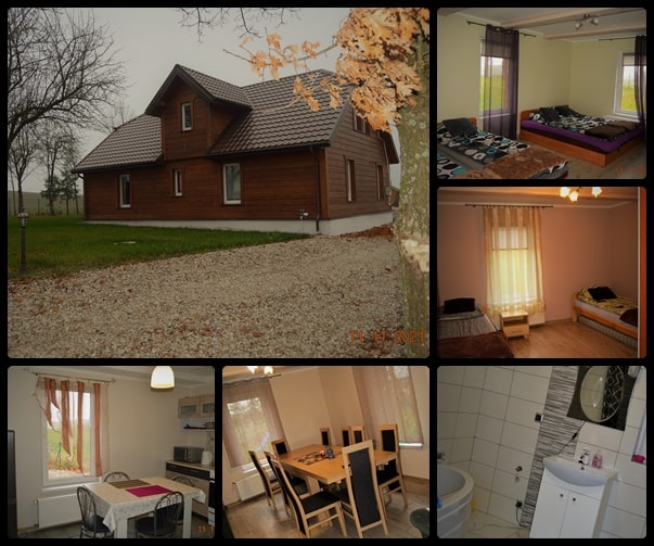 Duży, dwu piętrowy domek z czternastoma miejscami noclegowymi
